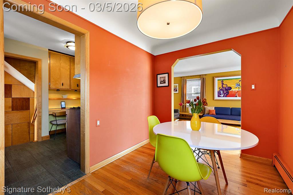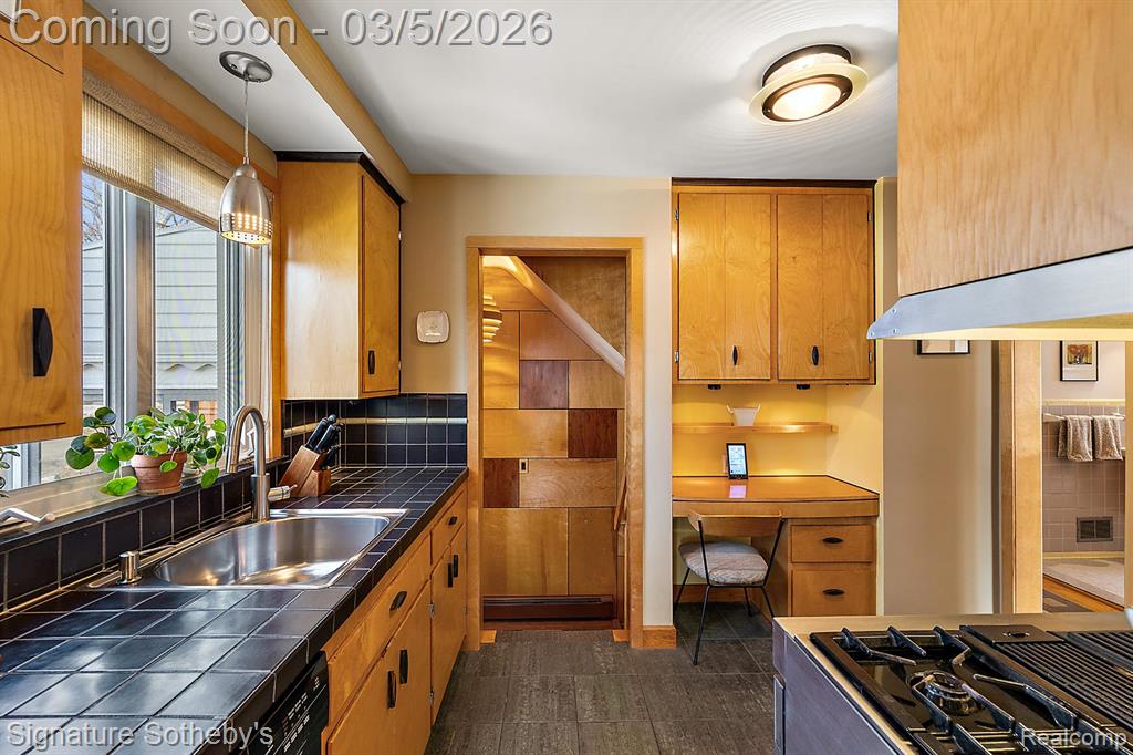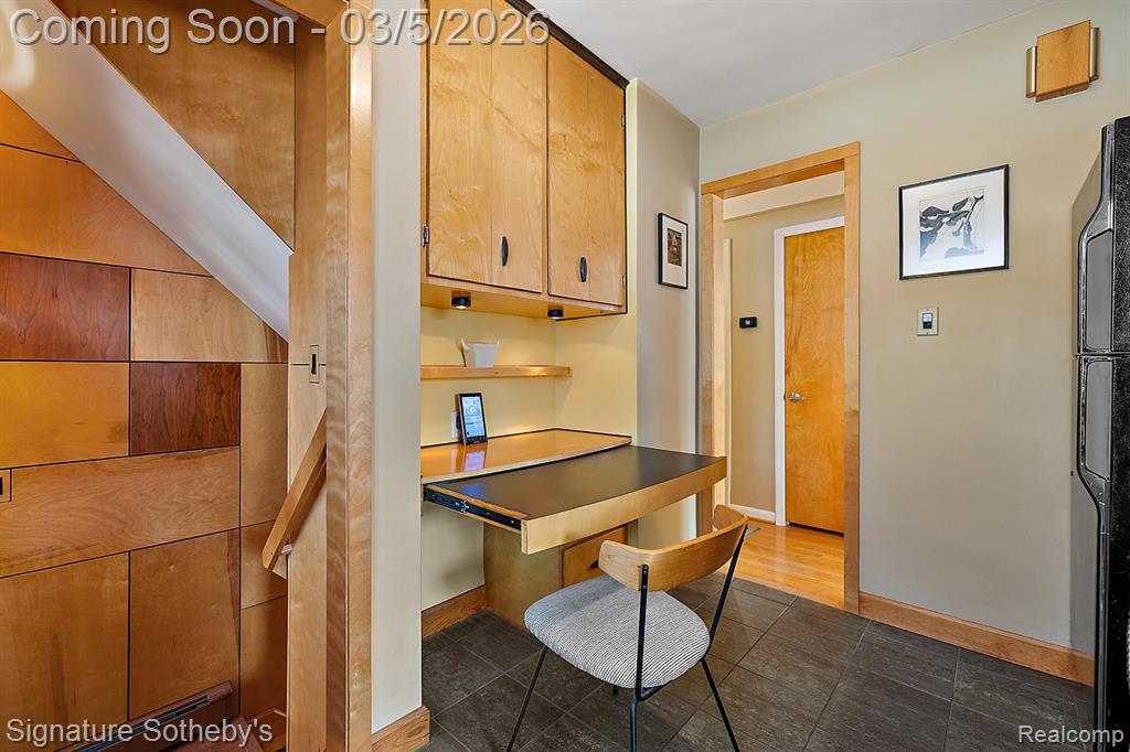 Absolutely charming, must-see Berkley bungalow. Homeowners are artists and woodworkers and have created a calming, nature-inspired living space within walking distance of some of Berkley’s excellent restaurants, shops and schools. The home features 3 spacious bedrooms and 2 full, wonderfully updated baths. The living room has a large, divided window with a southern exposure that absolutely lights up on sunny days, which flows into a surprisingly large dining room for entertaining. The kitchen has been updated with modern finishes on the floor and the counters and includes a 4-burner Jenn-Air down-draft gas stove with an interchangeable indoor gas grill setup for cooking steaks in the winter! The fully finished basement is a one-of-a-kind work of art. Birch paneling has been thoughtfully designed from the side door landing leading into the main space of the basement to create a mix of shape and grain direction that gives a sense of movement as you walk through. The basement also features a bar sink and a full bathroom with custom tile work, a heated floor and towel warmer. The spacious 3-season sunroom is perfect for relaxing or entertaining and has a newer tile floor and cedar paneling. There are also two outside entertaining spaces off the sunroom – a brick paver patio on one side and an exposed aggregate patio that connects to the two-car garage on the other. The back yard has recently had a cedar privacy fence custom built, incorporating black vinyl chain link fencing for a neat look. The landscaping gets many compliments from neighbors and is mostly planted in perennials with lots of flowers and grasses that return year after year. The cozy property has an amazing amount of storage space – from the cedar closet in the primary bedroom to the tool room hidden behind wood paneled doors in the basement – and even the garage is built for storage with slat walls & lots of space overhead. This adorable home is an absolute stunner. This home is going to move quick! |